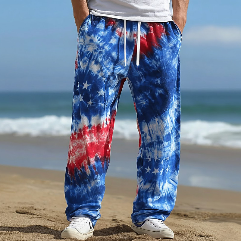 Men's Tie Dye Print US Flag America's 250th Anniversary Trousers Baggy Pants Casual Pants Mid Waist Fashion Casual Home Outdoor Vacation Elastic Drawstring Waist Linen-Like Pants with Pockets Summer
