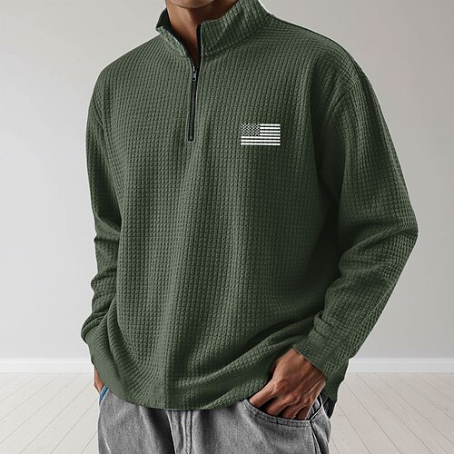 Per uomo Bandiera Americana Felpa Moda Quotidiano Classico Casual Collo alla coreana Zip a un quarto All'aperto Casa Ufficio Lavoro Nero Blu Marrone Verde Grigio Con zip Autunno Inverno progettista S