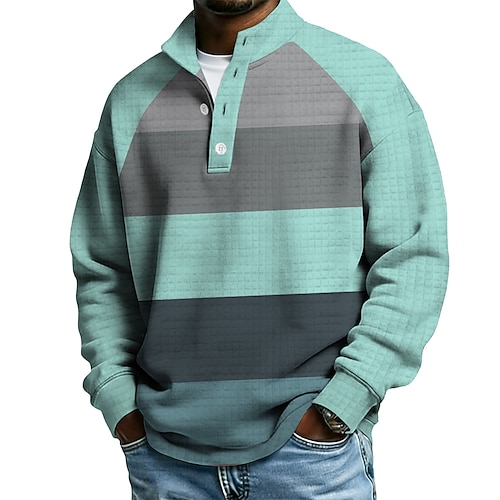 Per uomo Plaid Gradiente di Colore Nido d'ape Felpa Moda Quotidiano Casual Collo Alto Casa All'aperto Abbigliamento casual alla moda Ufficio Blu Verde Grigio Bottoni Autunno Inverno progettista S M L