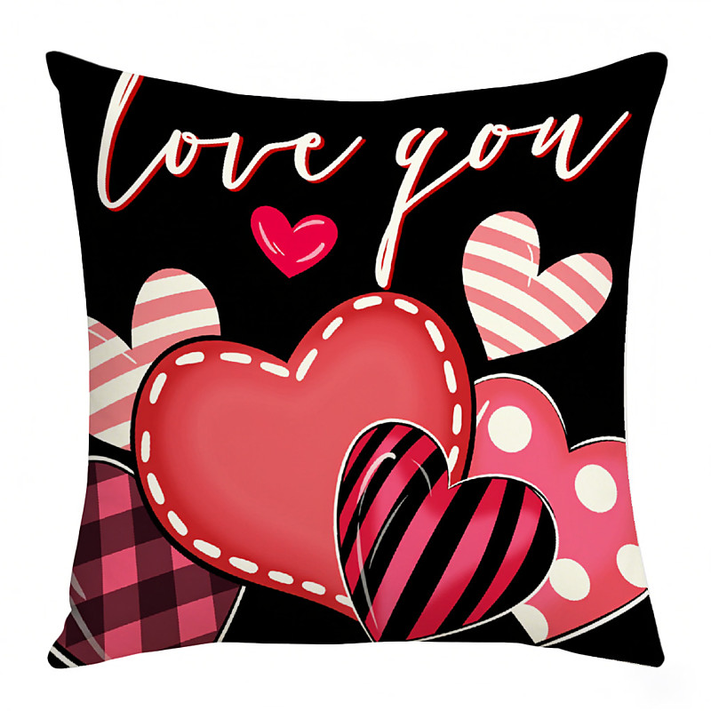 Valentine's Day Pink and Black Series Double-Sided Letter Print Pillow Case, Festive Holiday Atmosphere, Decorative Cushion for Living Room, Sofa, Valentine's Day Decor