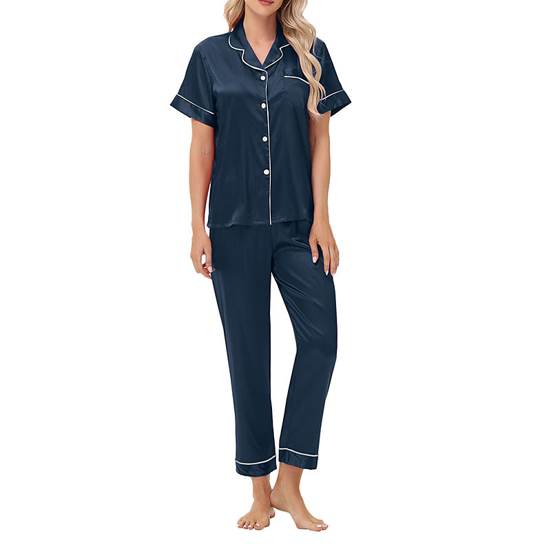 Women's Loungewear Pajama Set Fashion Casual Soft Pure Color Patchwork Elastic Waist Buttons Pant Home Vacation Short Sleeve Lapel Black Champagne Pink Wine Green Summer Spring Fall Regular Fit