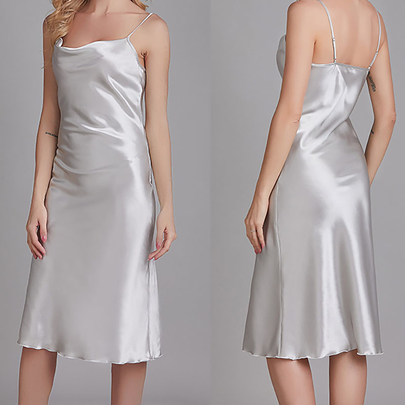Women's Nightgown Casual Soft Satin Pure Color Backless Daily Home Bed Sleeveless Straps Black White Champagne Pink Wine Summer Loose Fit