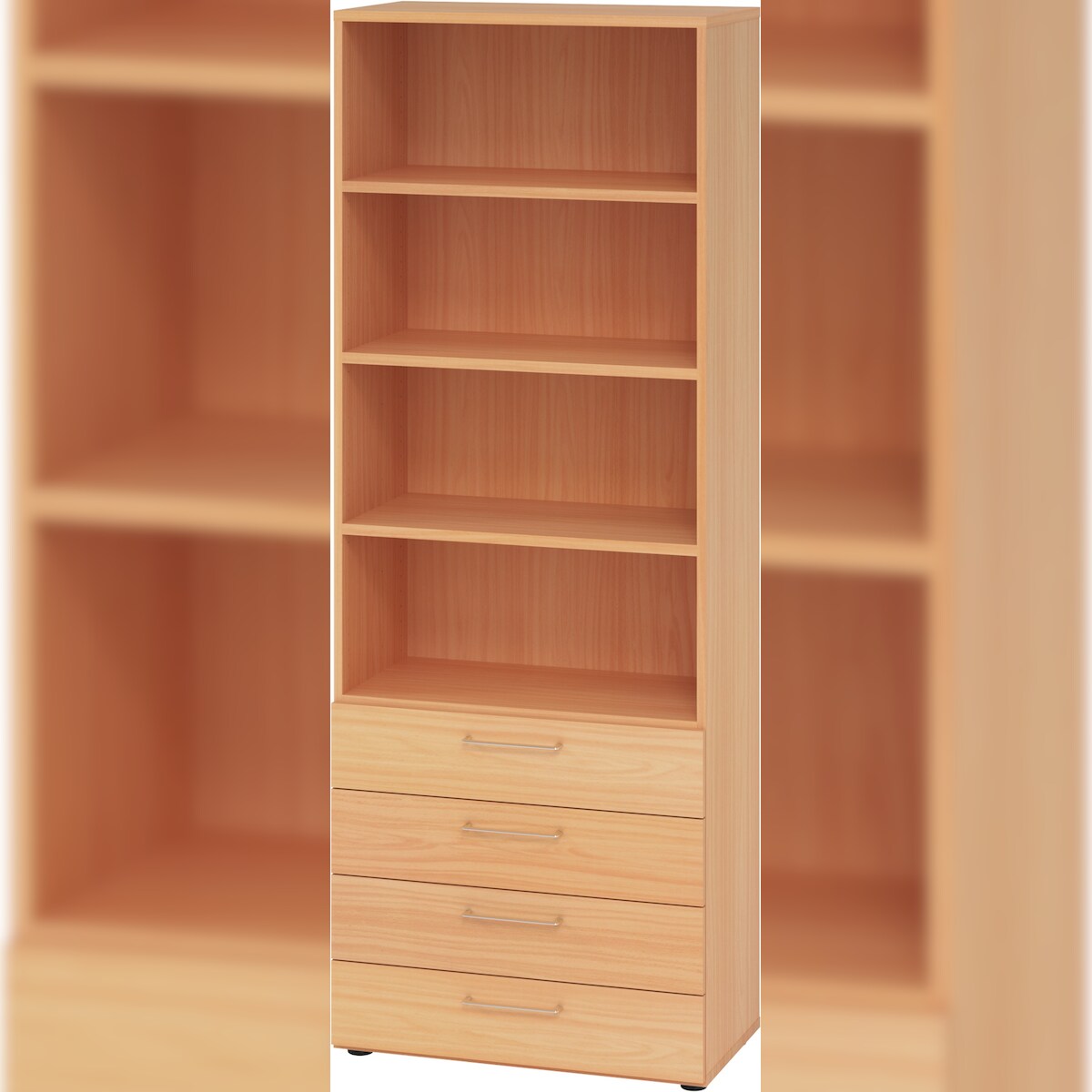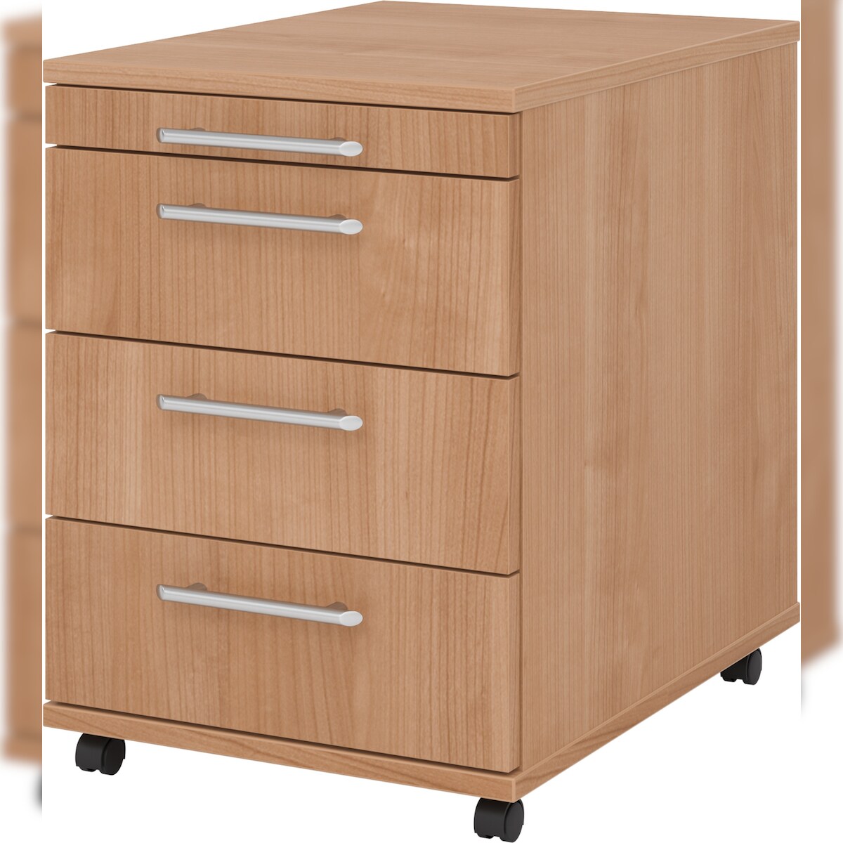 bümö smart Schubladenschrank, Büroschrank 80cm breit in Buche mit 4 Schüben & 4 Regalfächern - Bürocontainer aus Holz, Container mit Metallgriffen &