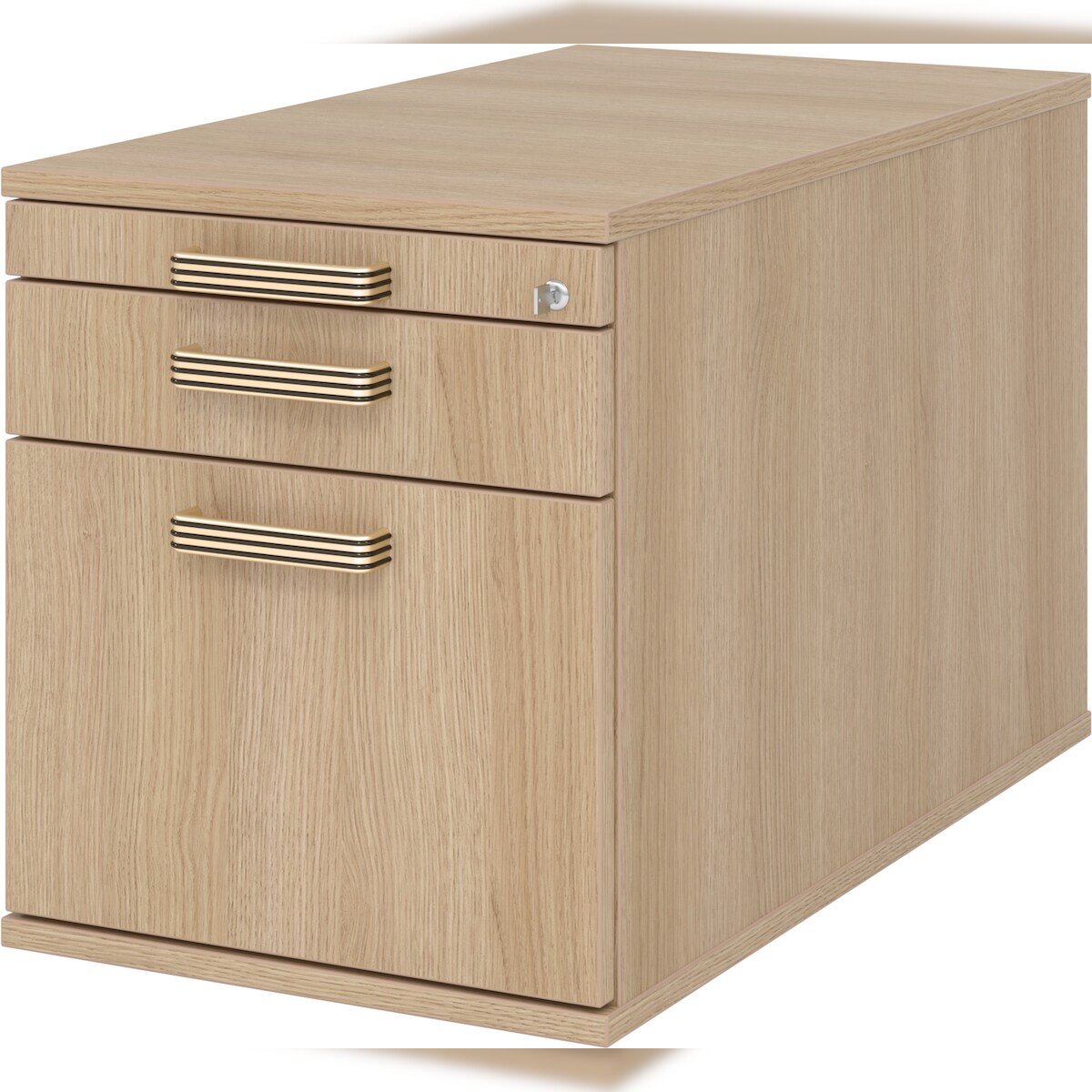 bümö Rollcontainer mit Hängeregister für Hängeordner, Container abschließbar in Eiche - Rollwagen mit Hängeregistratur als Schreibtisch Unterschrank