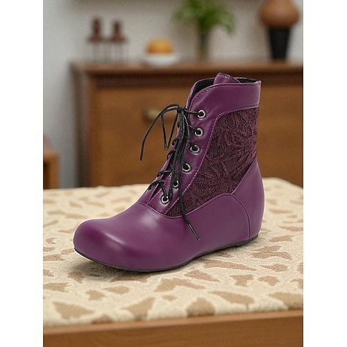 Damenstiefeletten mit verstecktem Keilabsatz und Schnürung aus braunem Kunstleder und Stoff, Vintage-Schuhe im Stil der 50er Jahre für Retro-Outfits, Cosplay und den Alltag