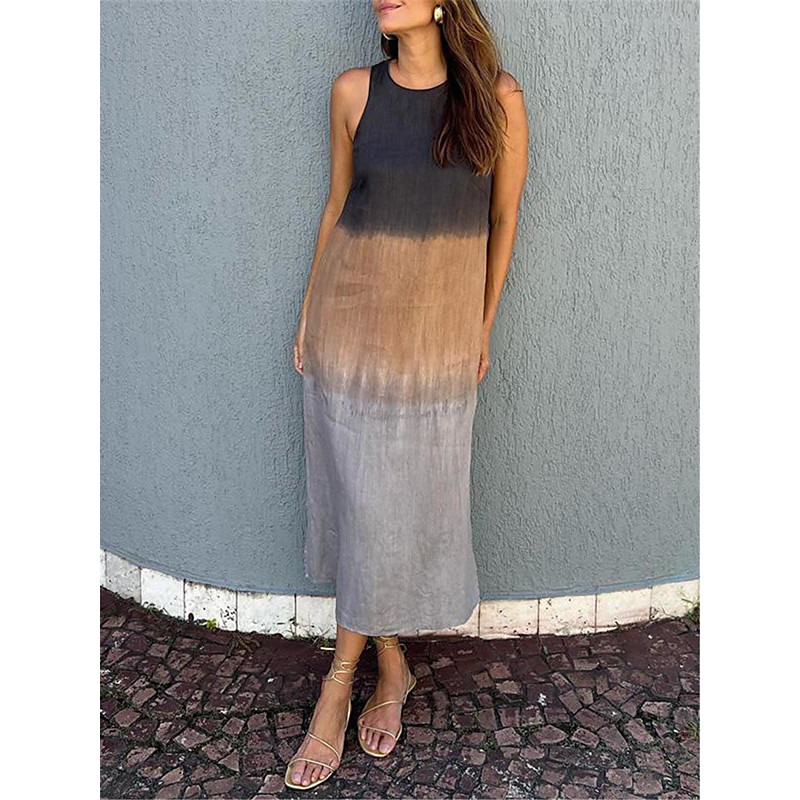 Women's Long Dress Maxi Dress Maxi Dress Linen-Inspired Dresses Cotton Linen Dress Sundress Cotton Summer Dress Stylish Vacation Daily Date Regular Fit Ombre Short Sleeve Crew Neck Blue Purple Brown