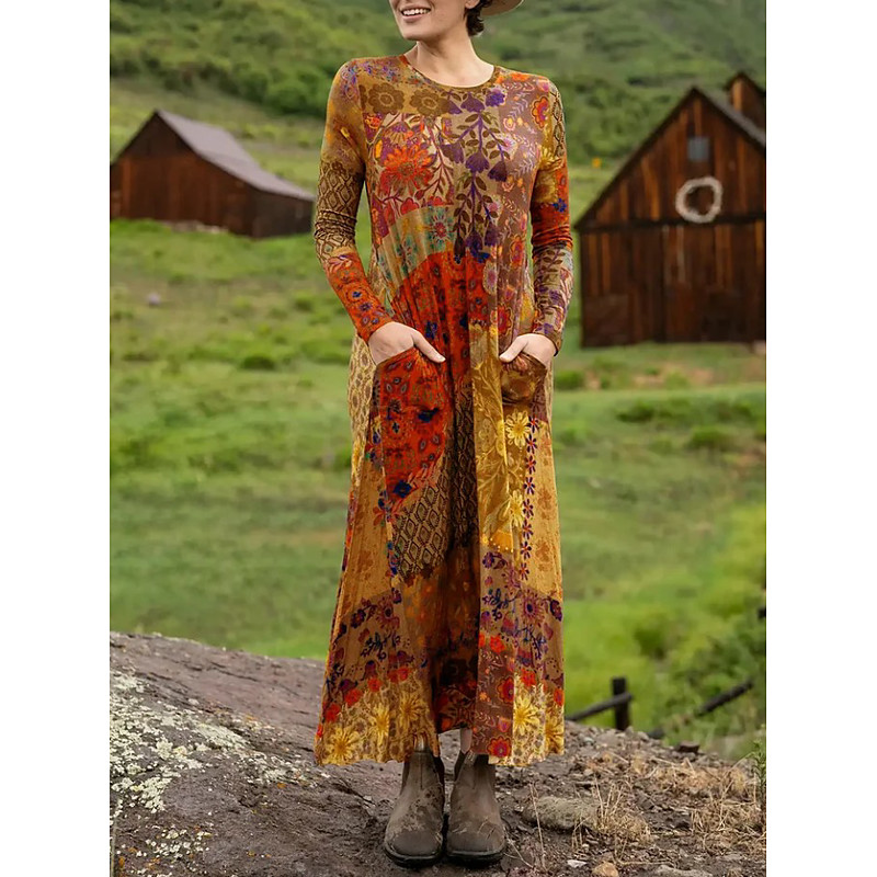 Women's Maxi Dress Vintage Bohemian A Line Dress Crew Neck Long Sleeve Casual Swing Dress Shift Dress Fashion Streetwear Modern Outdoor Daily Date Regular Fit Color Block Red Blue Purple Fall Winter