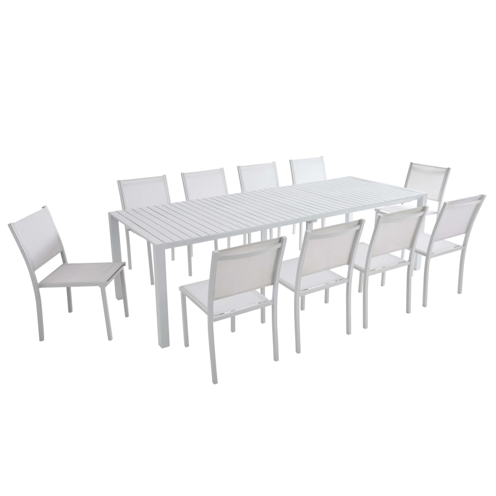 Tavolo da giardino allungabile alluminio 52/260 cm e 10 sedie bianche