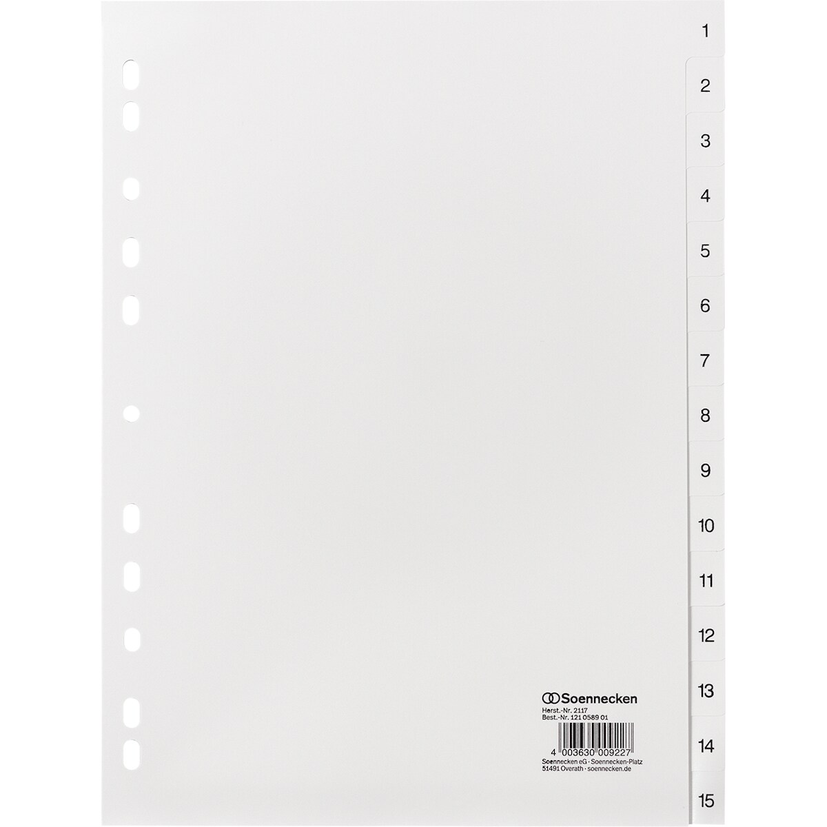 Soennecken Register 2117 DIN A4 1-15 volle Höhe PP weiß