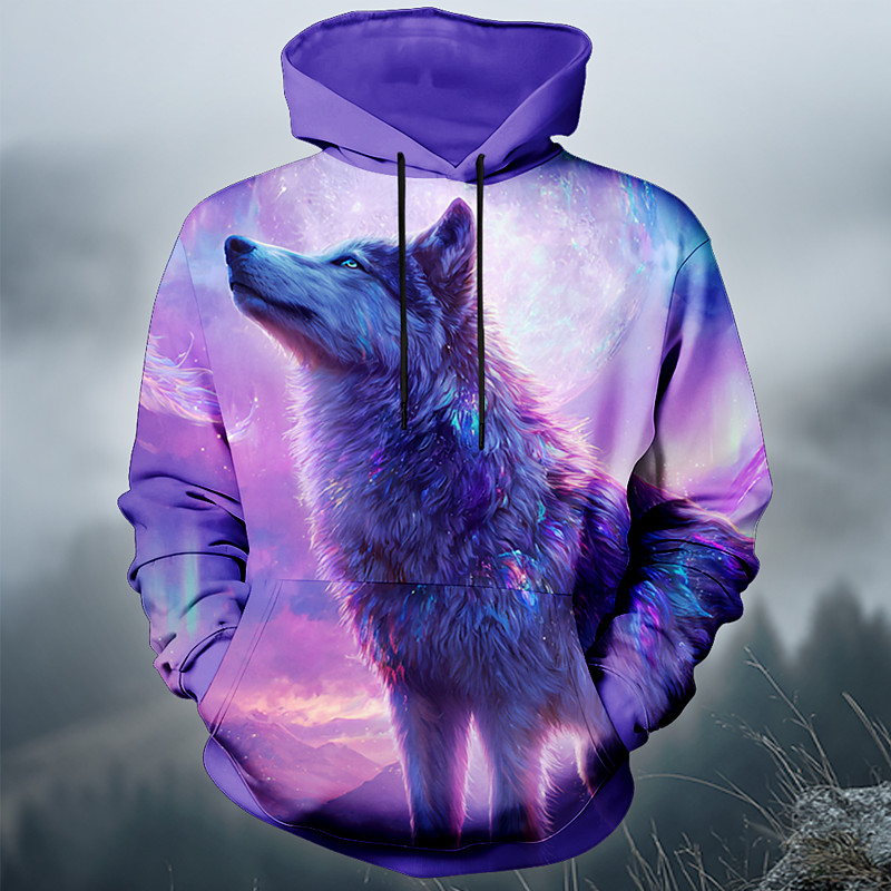 Men's Wolf Hoodie Sweatshirt 3D Fantasy Crew Neck Streetwear Club Gift Blue Purple Drawstring Fall Winter Designer S M L XL XXL XXXL