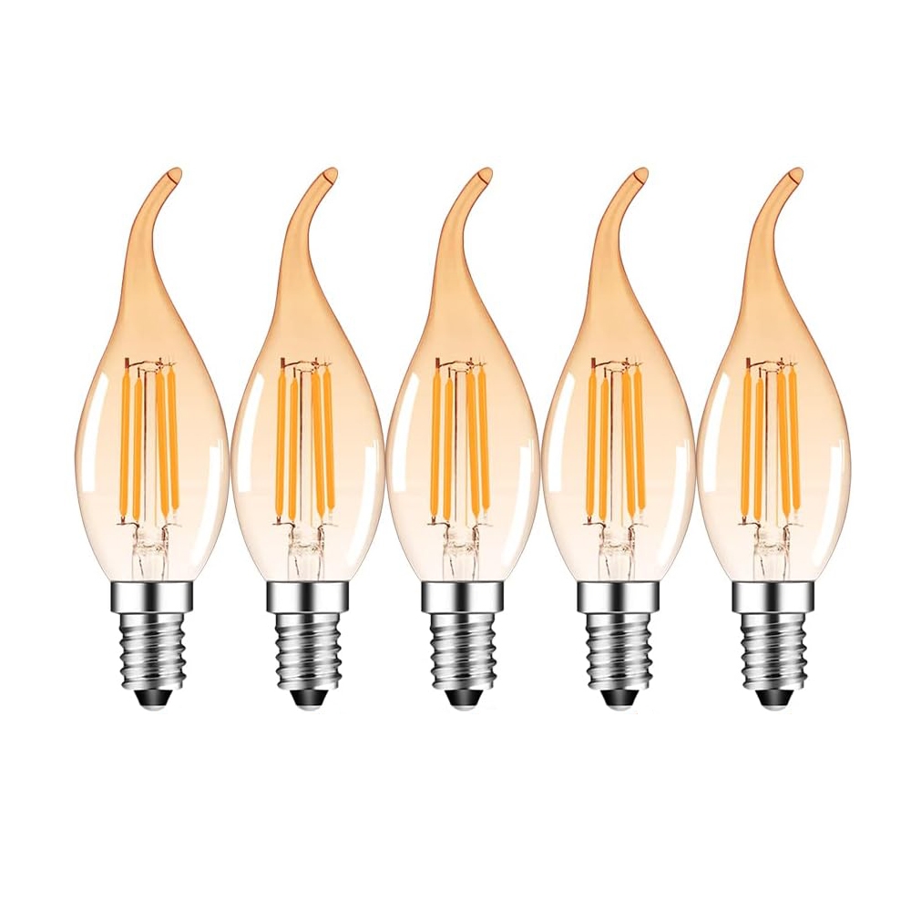 Aigostar 4W E14 LED Kerze Vintage Filament Glühbirne Birne Leuchtmittel Retro Bernstein 5 Stück