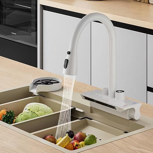 Wasserfall-Küchenarmatur, herausziehbarer Spültischmischer, Wasserhähne, LCD-Digitalanzeige, mit G1/2-Kalt- und Warmwasserschlauch