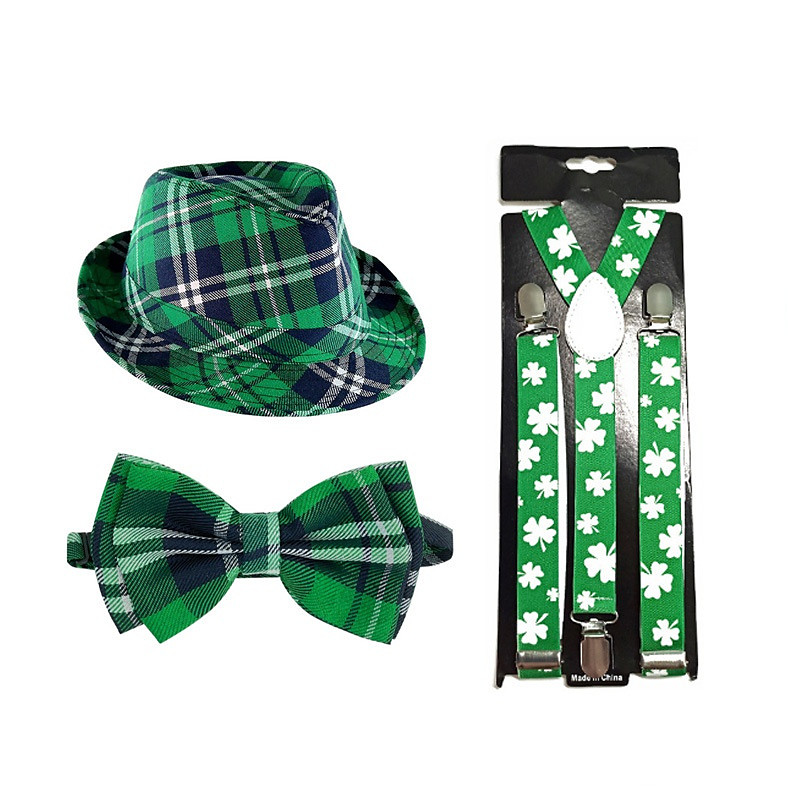 St. Patrick's Day Green Plaid Hat and Bow Tie Irish Party Accessory Set for Men Women and Kids