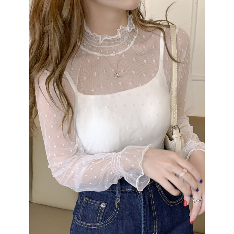 Women's Blouse Floral Polka Dot Elegant Stylish Basic Long Sleeve High Neck Regular Tops Daily Lace Patchwork Black and gray Black White Khaki Apricot Spring Fall Winter