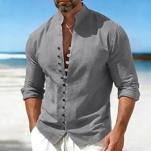Herren Hemd Leinenhemd Sommerhemd Freizeithemd Knopfhemd Einfach Lässig Täglich Blau Schwarz Weiß Rosa Langarm Mandarinkragen Sommer Frühling Bekleidung Button-Down