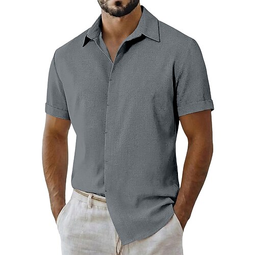 Herren Hemd Leinenhemd Freizeithemd Knopfhemd Baumwollhemd Einfach Urlaub Straße Schwarz Weiß Marineblau Khaki Kurzarm Großvaterkragen Sommer Bekleidung Button-Down