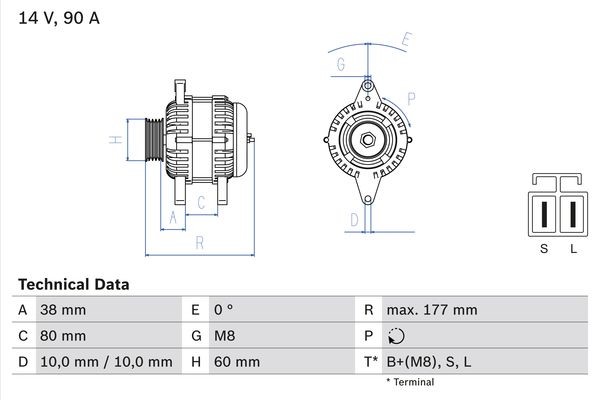 Laturi 14V 90A Bosch 0 986 049 800 - nissan patrol gr wagon v, terrano ii, terrano van ii - OE 23100 VC100, 23100 VC10A, 23100 VC10B