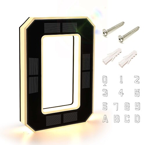 Luce solare da parete per esterni da 9 pollici, impermeabile IP44, luce a LED con numero civico per giardino, veranda, villa, strada, targa con numero civico illuminata, luce decorativa da parete per