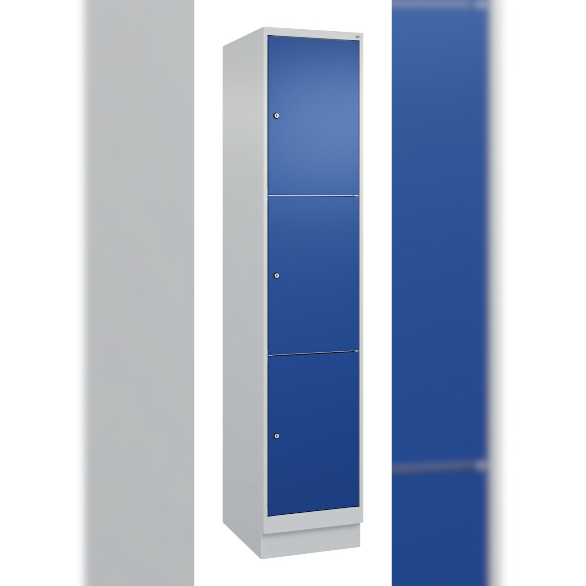 C+P Schließfachschränke Classic PLUS, Sockel, 3 Abteile, HxBxT 195x40x50cm, Zylinderschloss, Hellgrau/Enzianblau von PROREGAL