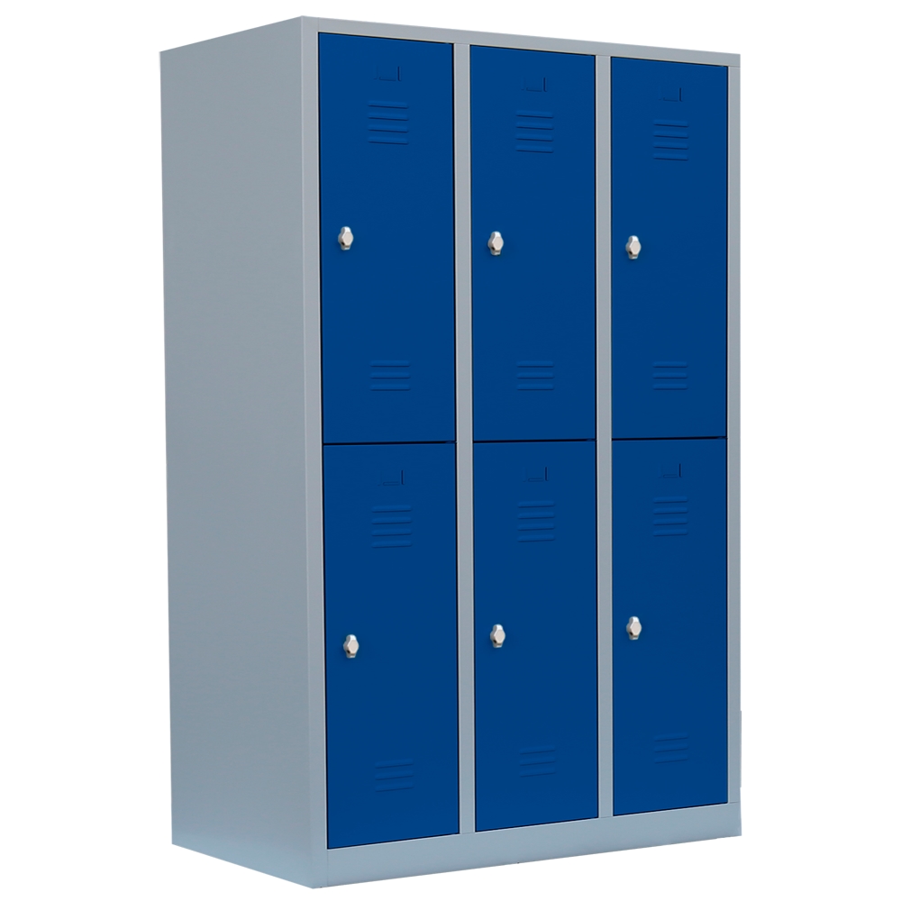 Lüllmann® Garderobenschrank, 3 Abteile doppelstöckig, H 1800 x B 1185 x T 500 mm, lichtgrau/enzianblau
