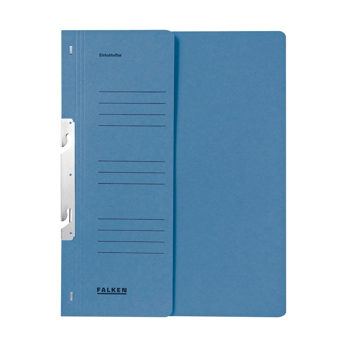 Falken 80003999 50x Einhakhefter für DIN A4, 250g/m2 Manila-RC-Krt., 1/2 Vorderd., kaufm. Heftung - Blau