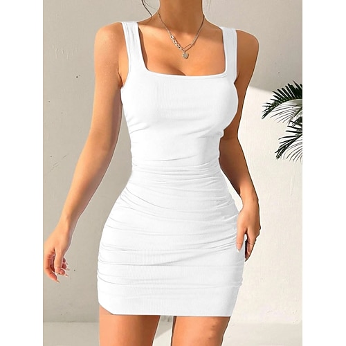 Per donna Mini Abito Abito Bianco Abito da laurea Abito aderente Elegante Moda Moderno All'aperto Vacanza Uscire Vestibilità regolare Semplice Senza Maniche Collo quadrato Nero Bianco Borgogna Blu