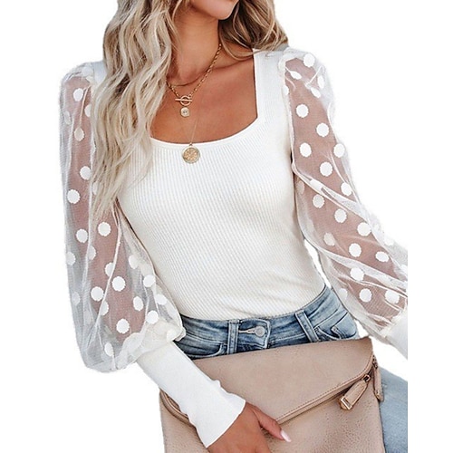 Per donna Blusa Semplice Casual Manica Lunga Collo quadrato Top Regolari Quotidiano Ferie Patchwork Rete Nero Bianco Rosa Autunno Inverno