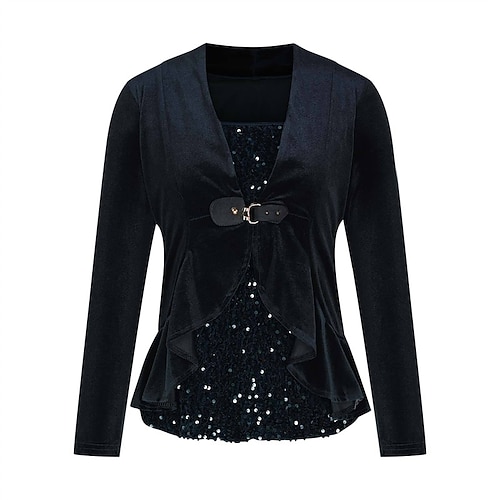 Per donna Blusa Top Eleganti Semplice Elegante Vintage Quotidiano Manica Lunga Collo quadrato Top Regolari Lavoro Quotidiano Ferie Paillettes Arricciato Patchwork Nero Verde Grigio Autunno Inverno