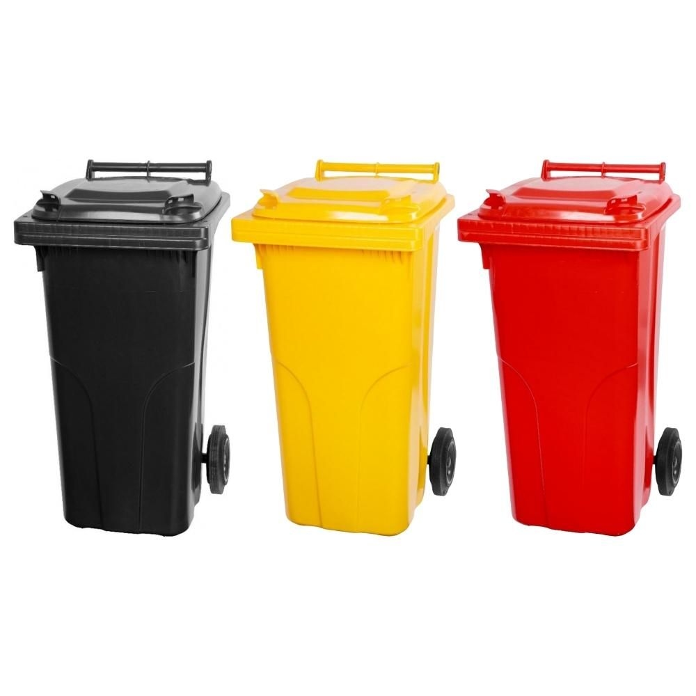 Mega Deal 3x PROREGAL 2-Rad-Mülltonne, 120 Liter Grau & Gelb & Rot, Mülltonne, Müllgroßbehälter, Mülleimer, Abfalltonne, Müllbehälter