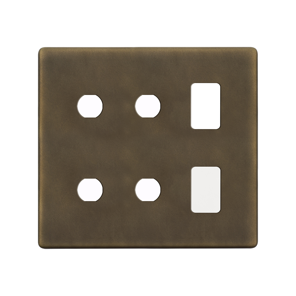 Soho Lighting Vintage Brass 6 Gang 2RM+4CM Dual Module Grid Switch Plate - Size: H 146mm x W 146mm