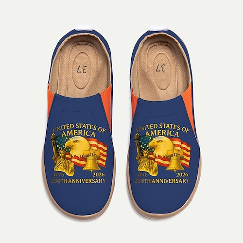 Stati Uniti 250° Anniversario Scarpe Slip-On Ampie Stampate da Donna USA - Scarpe da Passeggio Leggere Stile Urbana Casual Patriottico per Moda da Strada Festival Viaggi e Uso Quotidiano