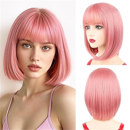 Parrucca di Carnevale Biondo Rosa Nero Liscio Ciocca Corto Parrucca sintetica da festival Martedì grasso Parata Capelli per costumi da cosplay per Da donna