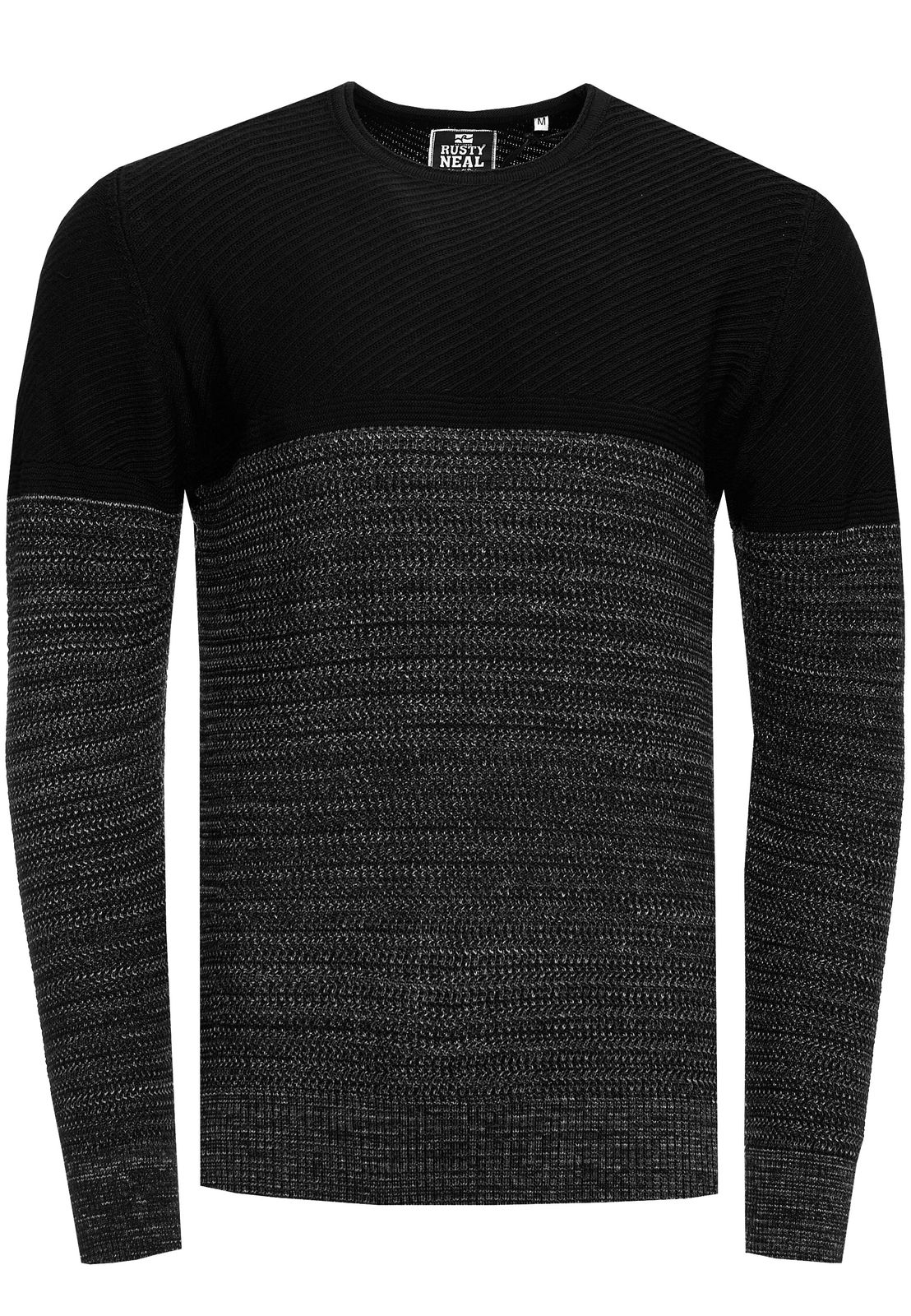 Maglione da uomo in maglia fine con blocchi di colore, girocollo 13376 Nero