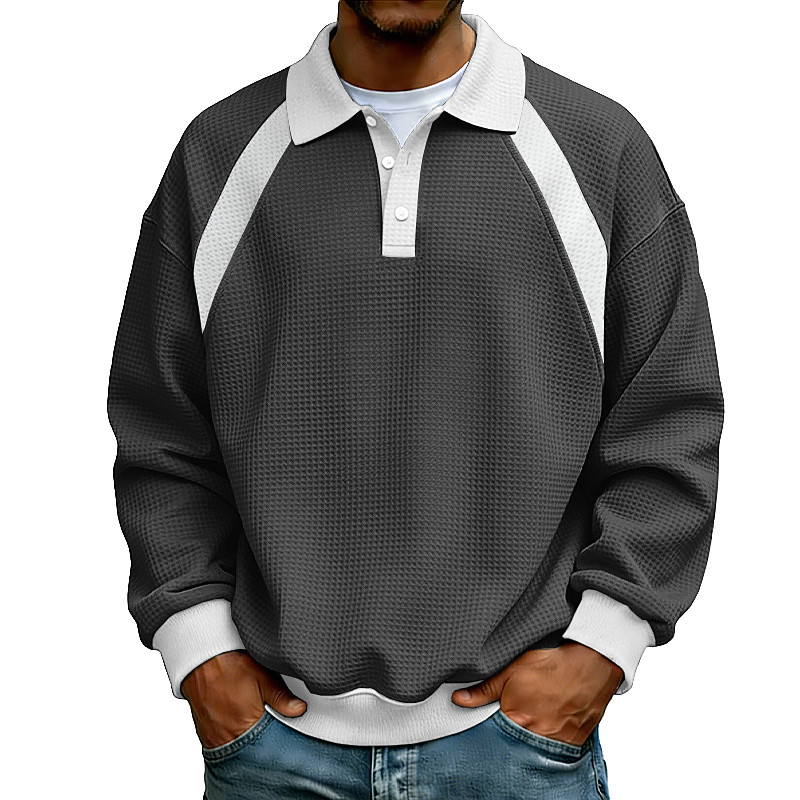 Men's Waffle Polo Shirts Polo Shirts Casual Street Lapel Long Sleeve Basic Modern Color Block Patchwork Buttons Spring Fall Regular Fit Black Light Green Navy Blue Gray Light Blue Waffle Polo Shirts