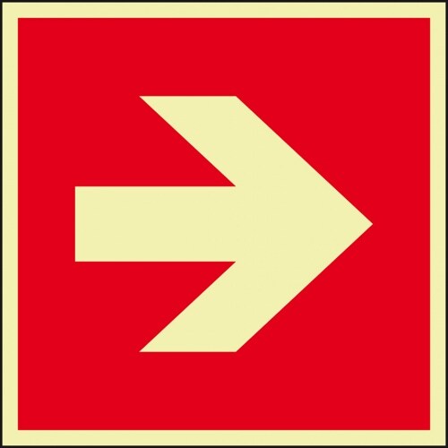 Schild I PERMALIGHT power langnachleuchtend Brandschutzschild Richtungsangabe, Aluminium, 200x200mm, ASR A1.3, DIN EN ISO 3864