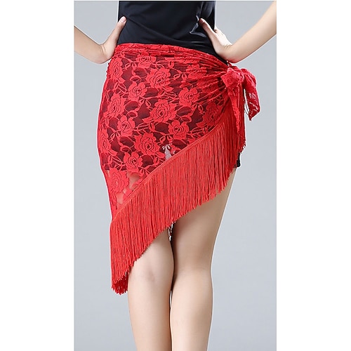 roter asymmetrischer Fransenrock für lateinamerikanische Tänze, Damen