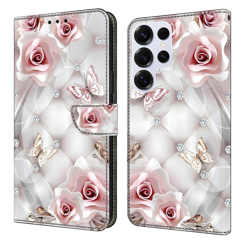 Plånboksfodral för Samsung Galaxy S26 Ultra Konstläder Stativ - Rosa Butterfly