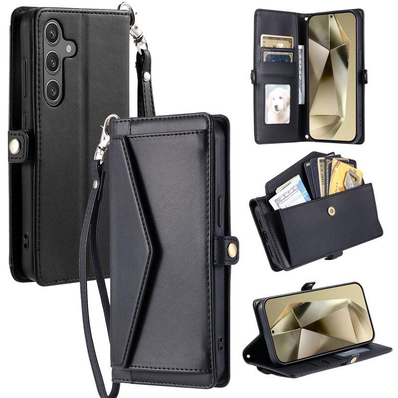 Samsung Galaxy S26 Plus Plånboksfodral Konstläder Med Handrem Ställ - Svart