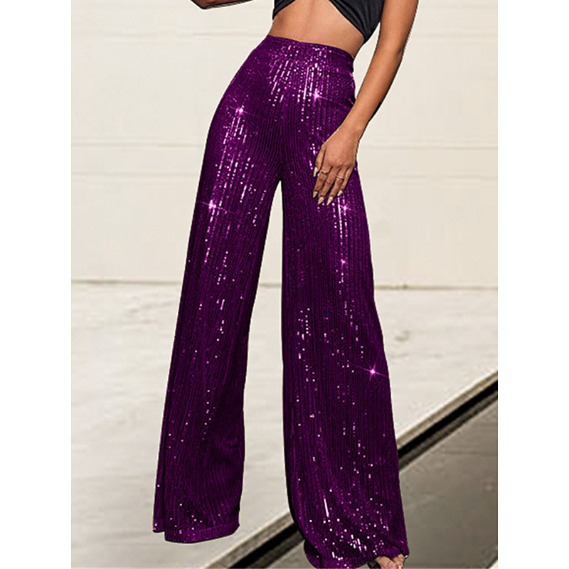 Women's Wide Leg Pants Trousers Sparkly Pants Elegant Fashion Sparkle Full Length High Waist Plain Sequins Comfy Micro-elastic Party Street Party Evening claret M beige Pink gold Black Summer Spring