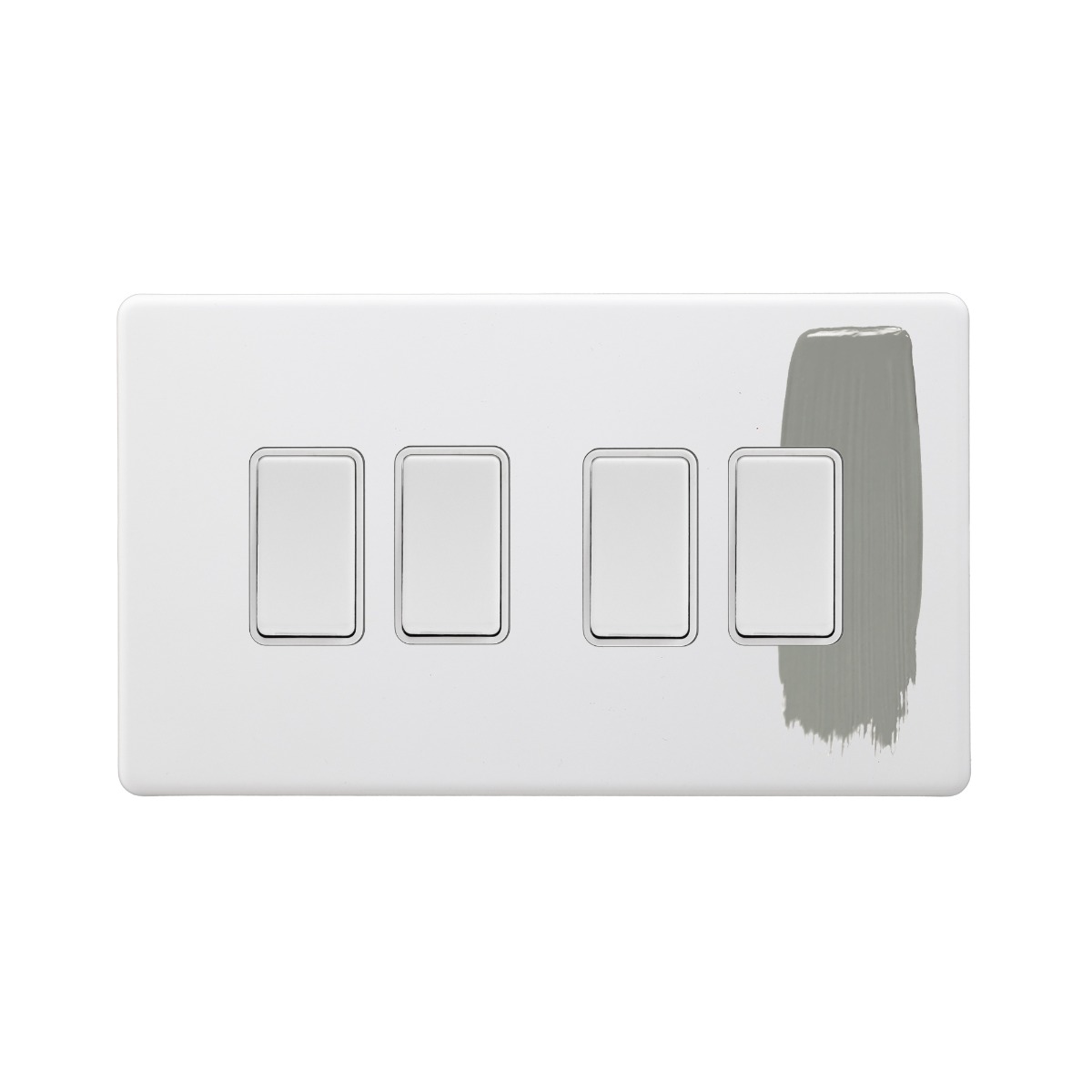 Soho Lighting Primed Paintable 4 Gang 2 Way 10A Light Switch with White Switch - Size: 86mm x 146mm x 4.5mm