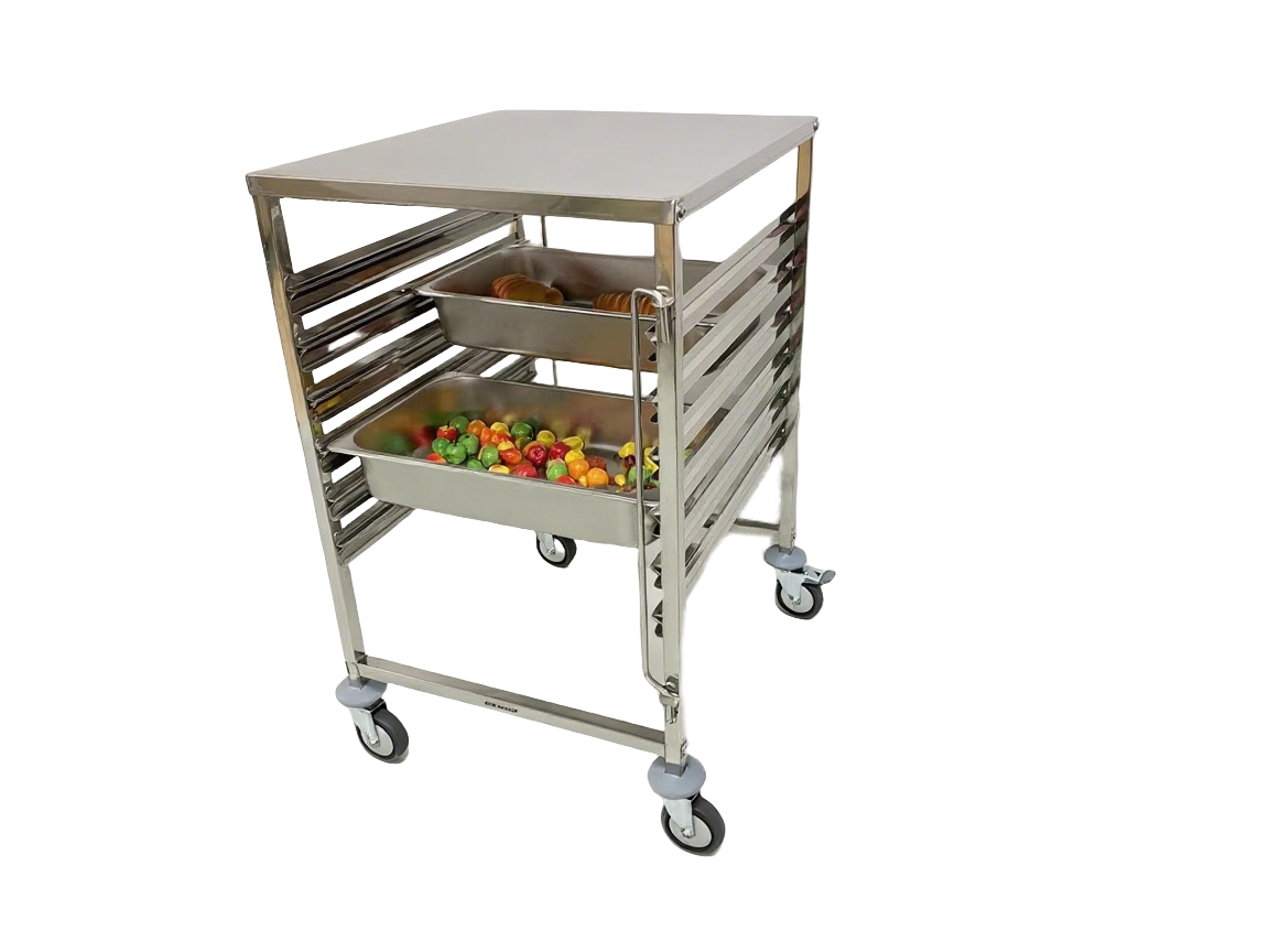 Leiterwagen aus Edelstahl GN 2/1 - 6 Ebenen mit PREMIUM-Tablett / GOLDINOX