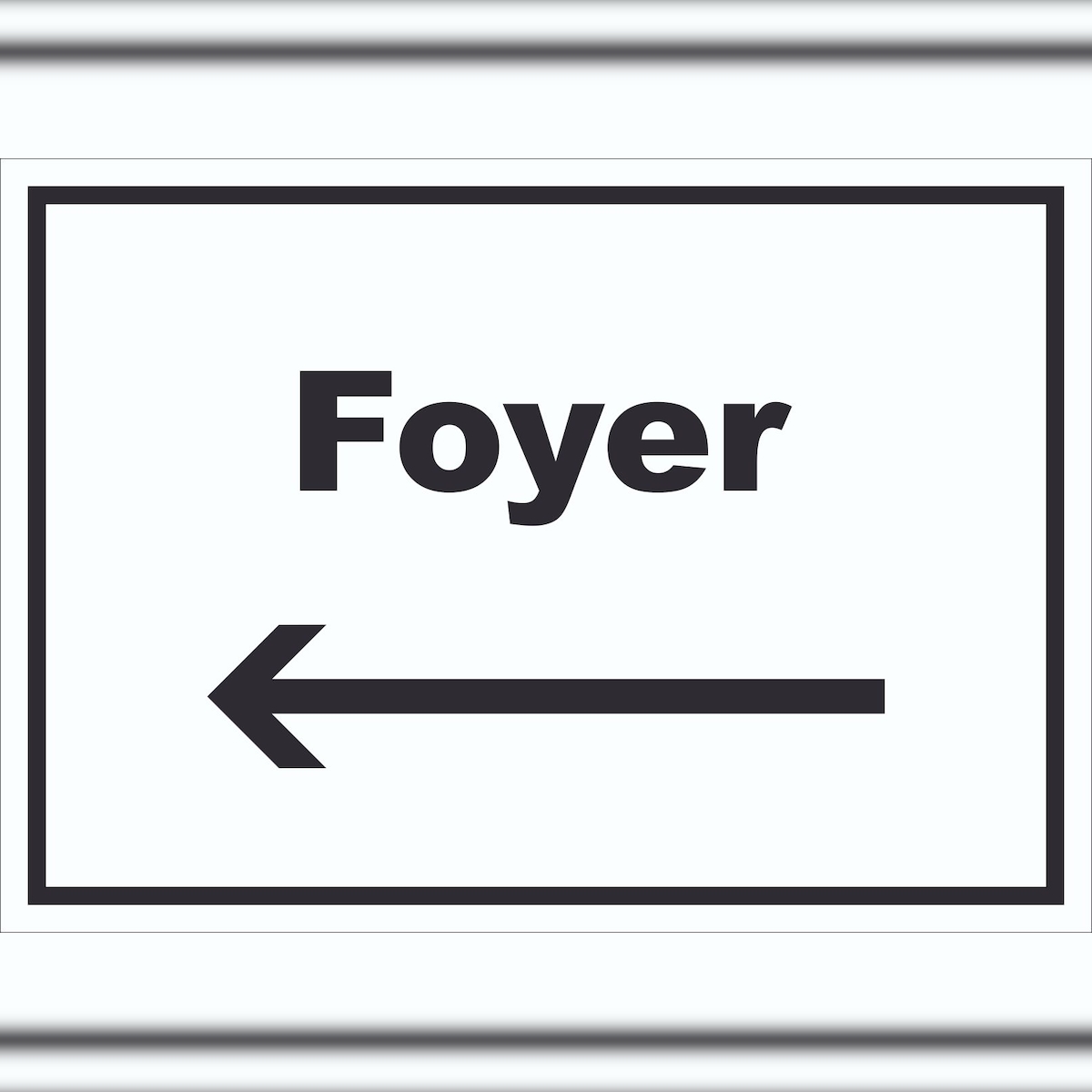 HB-Druck Foyer Schild mit Text und Richtungspfeil links Eingangshalle waagerecht A2 (420x594mm)