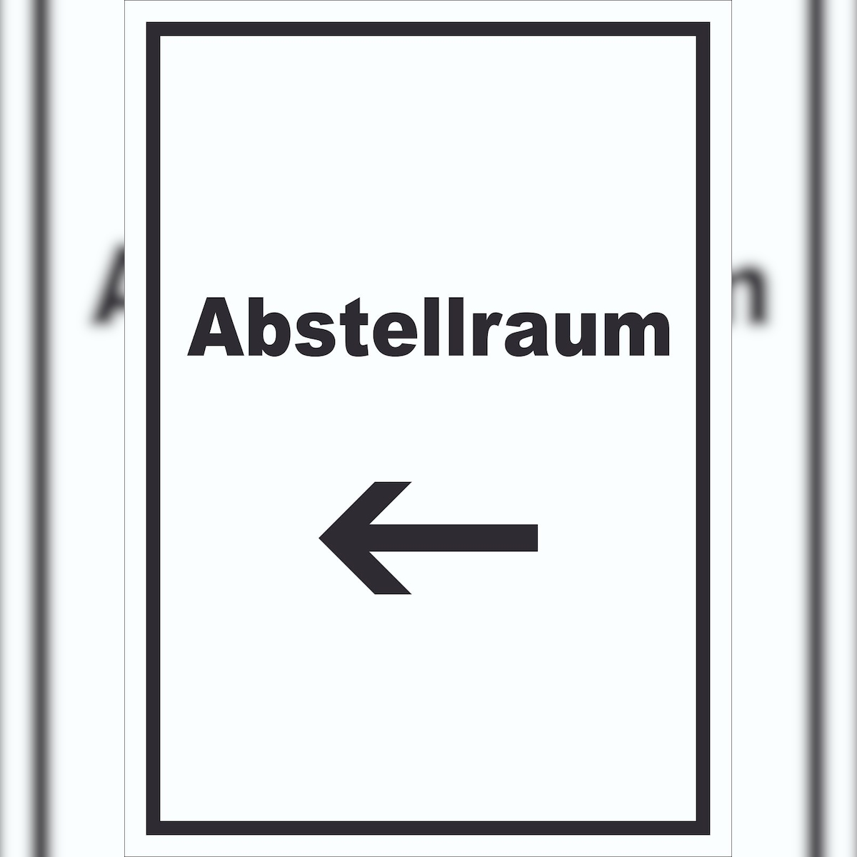 HB-Druck Abstellraum Schild mit Text und Richtungspfeil links Lager hochkant A1 (594x841mm)