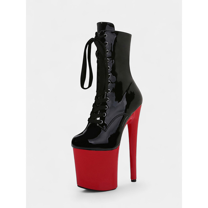 Women's Red Patent Leather Lace-Up Platform Ankle Boots - Sexy High Stiletto Heel Stage Boots for Performers, Nightclubs Festival Outfits