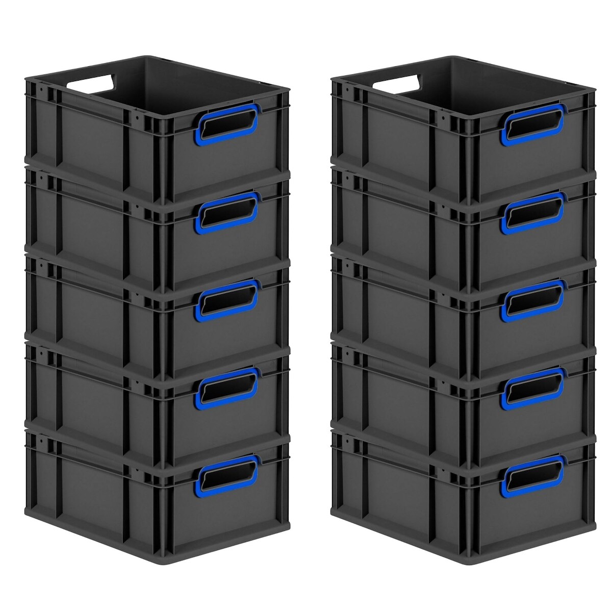 PROREGAL SuperSparSet 10x Eurobox NextGen Color, HxBxT 17x30x40cm, 16 Liter, Griffe blau offen, Schwarz, Eurobehälter, Transportbehälter