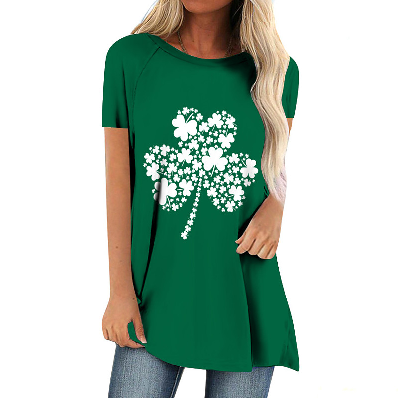 St. Paddy's Day St. Patrick's Day Women's T Shirt Leaf St. Patrick's Day Tunic Short Sleeve Round Neck Long Tops Holiday Weekend Print Grass Green White Light Green Army Green Green