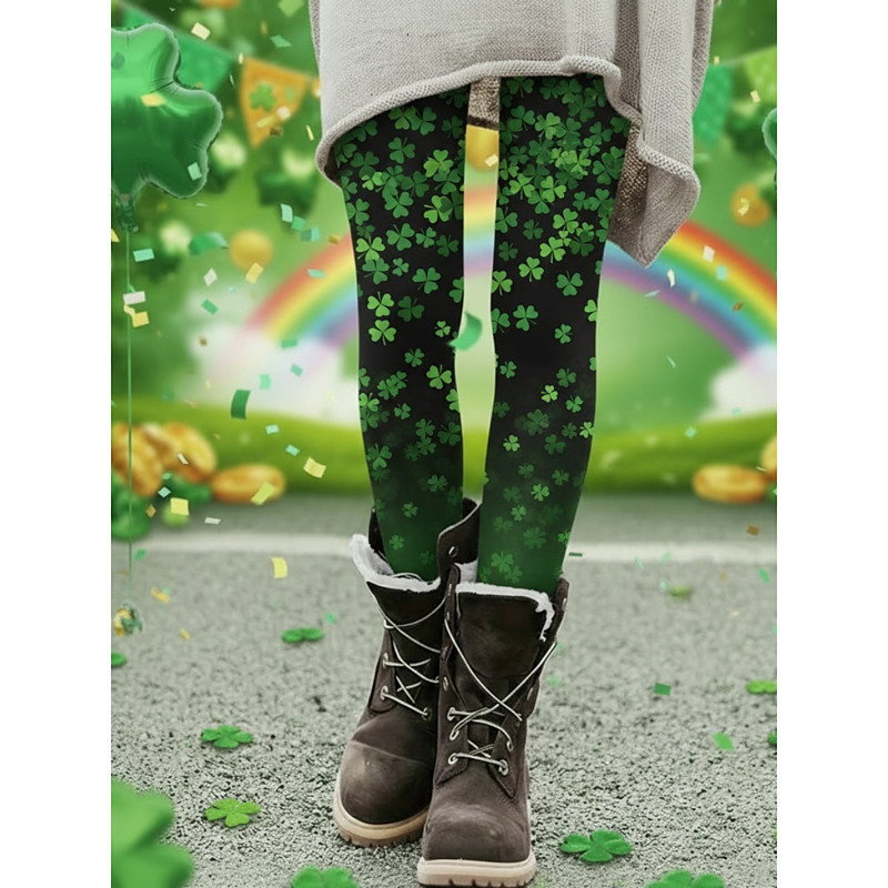 St. Patrick Day Women's Leggings Cozy Leggings Vacation Casual Full Length High WaistPantsGraphic Clover Printing Comfortable High Elasticity Casual Daily Vacation Frosted Green Black Dark Green Green