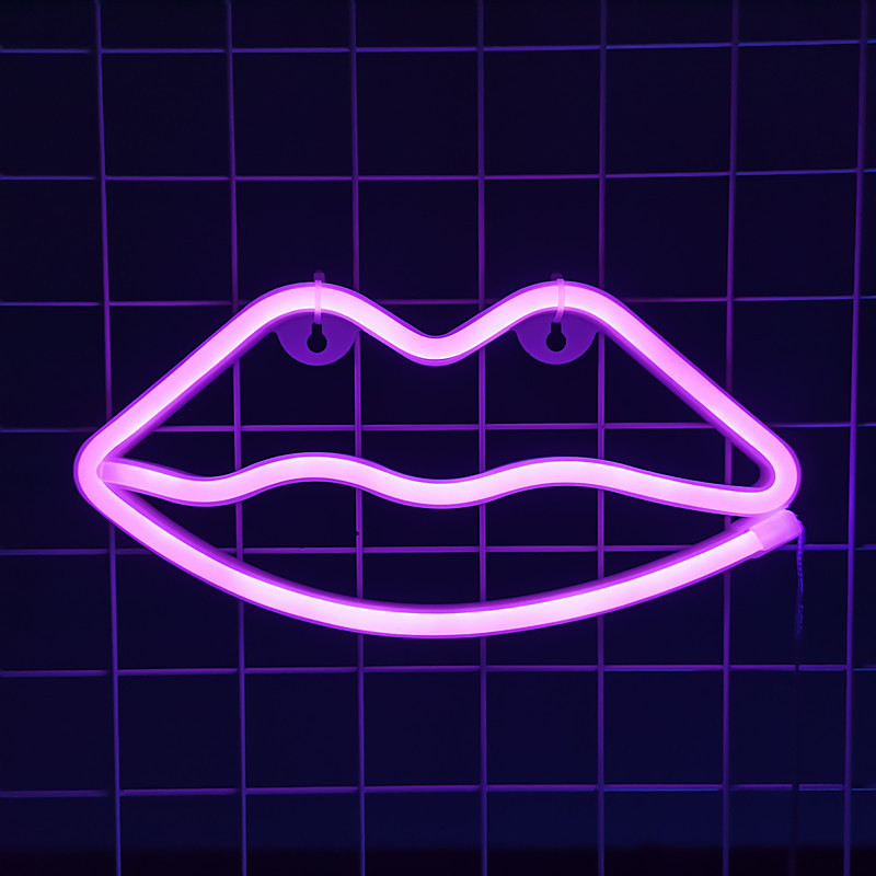 LED sexy lips neon lights hanging on walls, pendant lights, Valentine's Day indoor bedroom party atmosphere decoration lights, AAA battery, USB power supply dual-use
