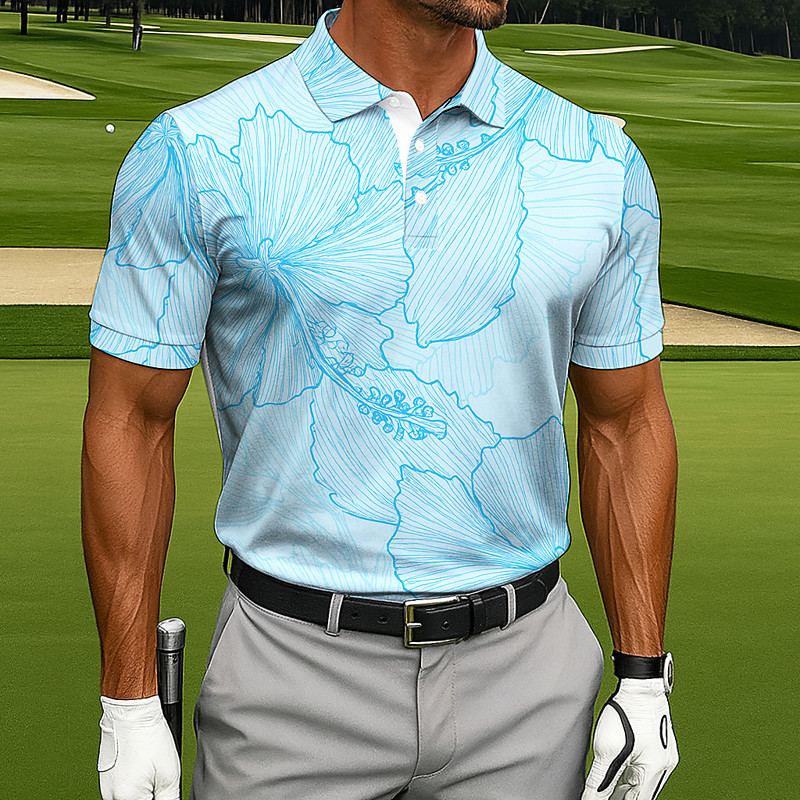 Men's Plants Golf Polo Short Sleeve Polo Shirts Collared Shirts Sportswear Casual Outdoor clothing Daily Wear 3D Print Buttons Summer Sky Blue Green Gray