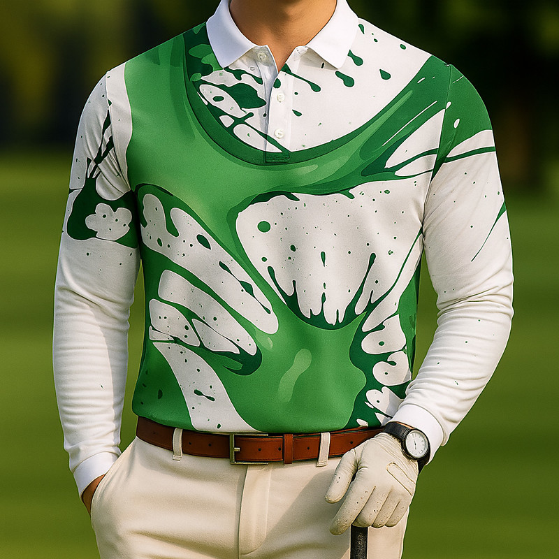Men's Golf Splash Ink Polo Long Sleeve Polo Shirts Lapel Casual Outdoor Athleisure Daily Wear 3D Print Buttons Spring Fall Winter Blue Green